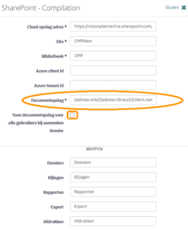 Bij het aanmaken van een dossier wordt het standaardpad voor documentopslag voortaan centraal beheerd via ‘Beheer Partner’ -> 'Externe koppelingen' -> 'Cloud opslag locatie'. Nieuwe dossiers slaan documenten automatisch op deze locatie op. Voor beheerders blijft het standaardpad inzichtelijk zoals voorheen. Voor medewerkers kan deze functionaliteit via ‘Beheer Partner’ worden geactiveerd.